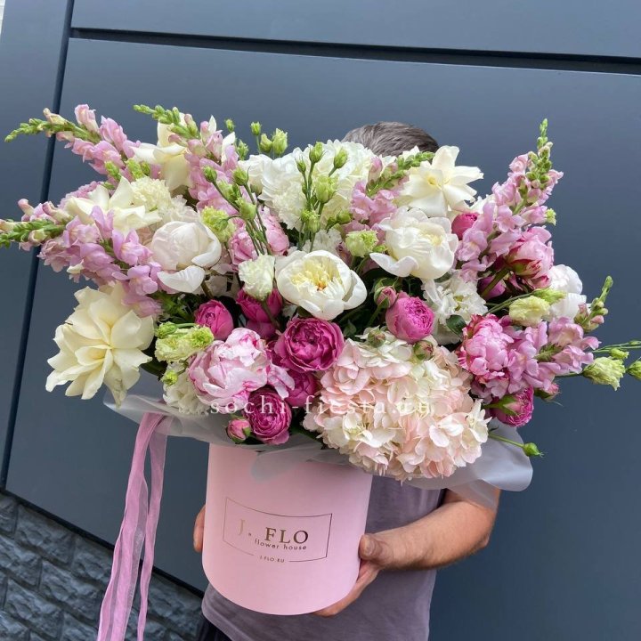 Дизайнерский цилиндр с пионами "Саманта"