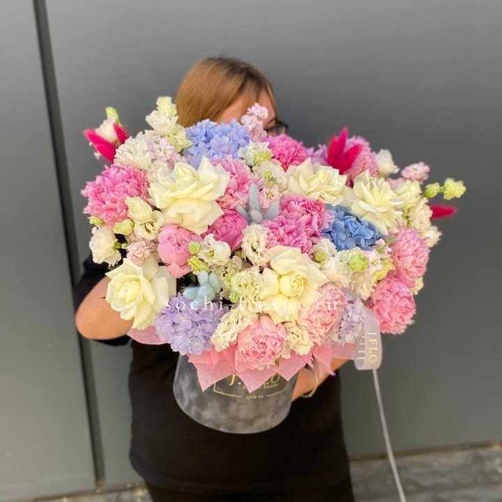 Премиум корзина гортензий и пионов
