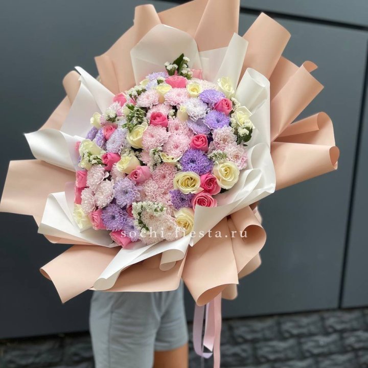 Букет хризантем и диантусов "Воздушный"