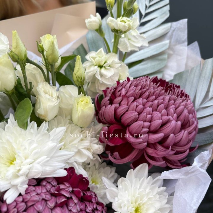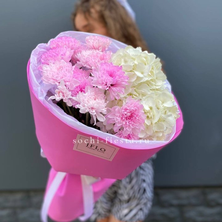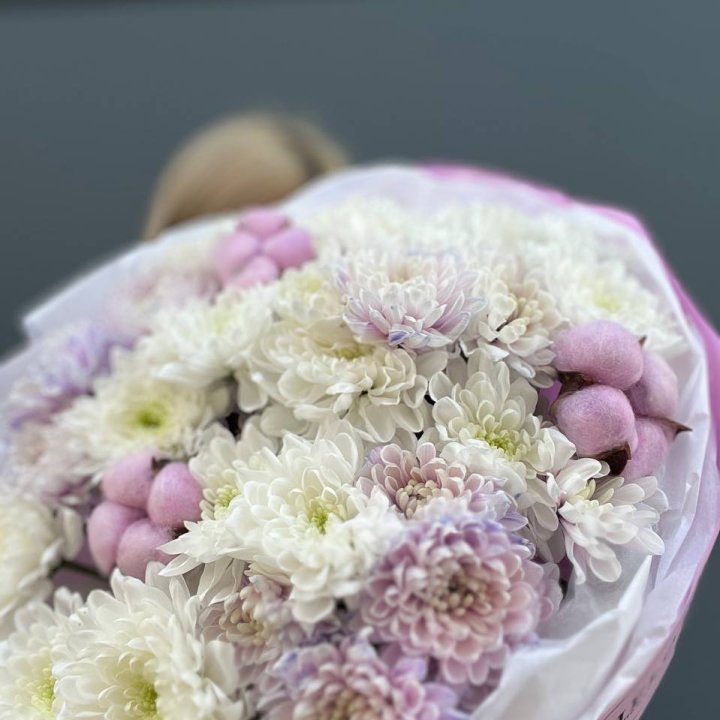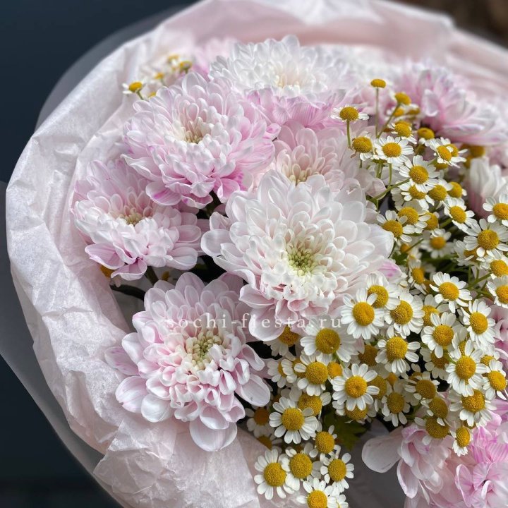 Букет бело-розовых хризантем