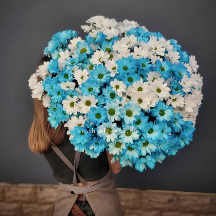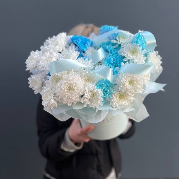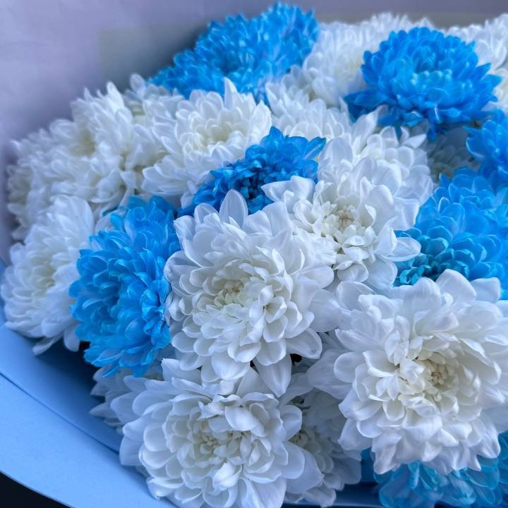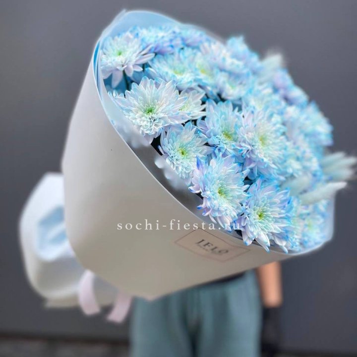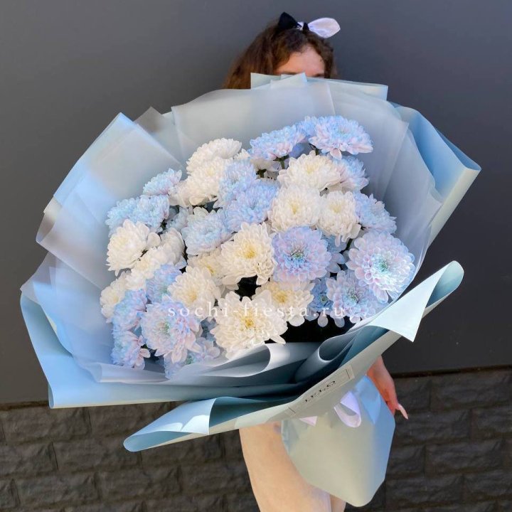 Букет нежно-голубых хризантем