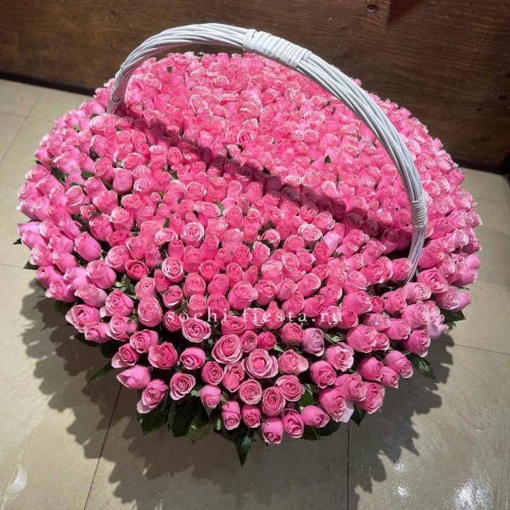 101 розовая роза в корзине