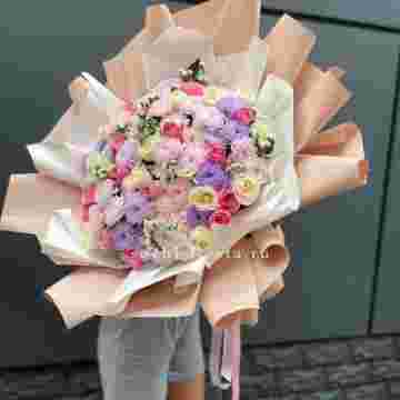 Цветочная корзина из пионов и пионовидных роз "Perfezione"