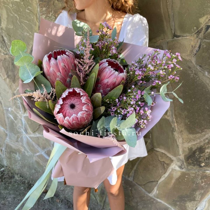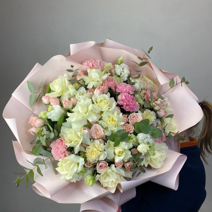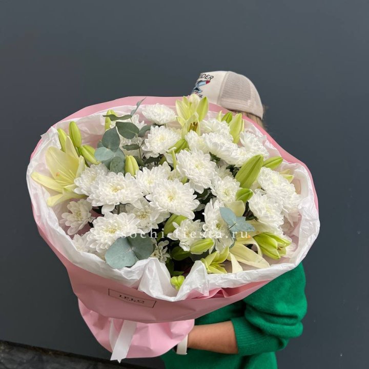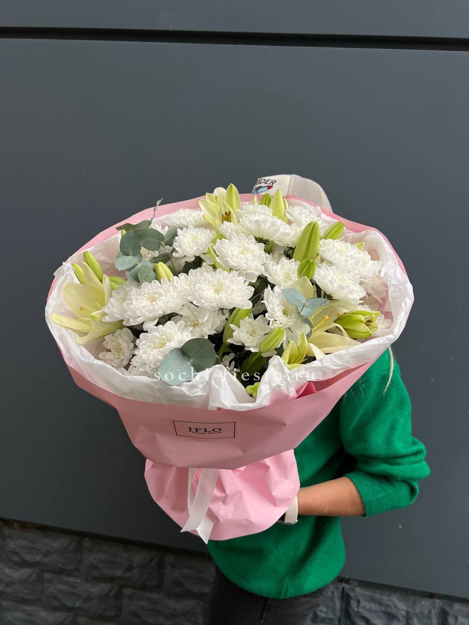Букеты из эустом, альстромерий, диантусов, хризантем в АдлереСреднее время сборки: 35-45 минут