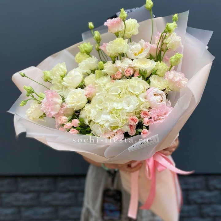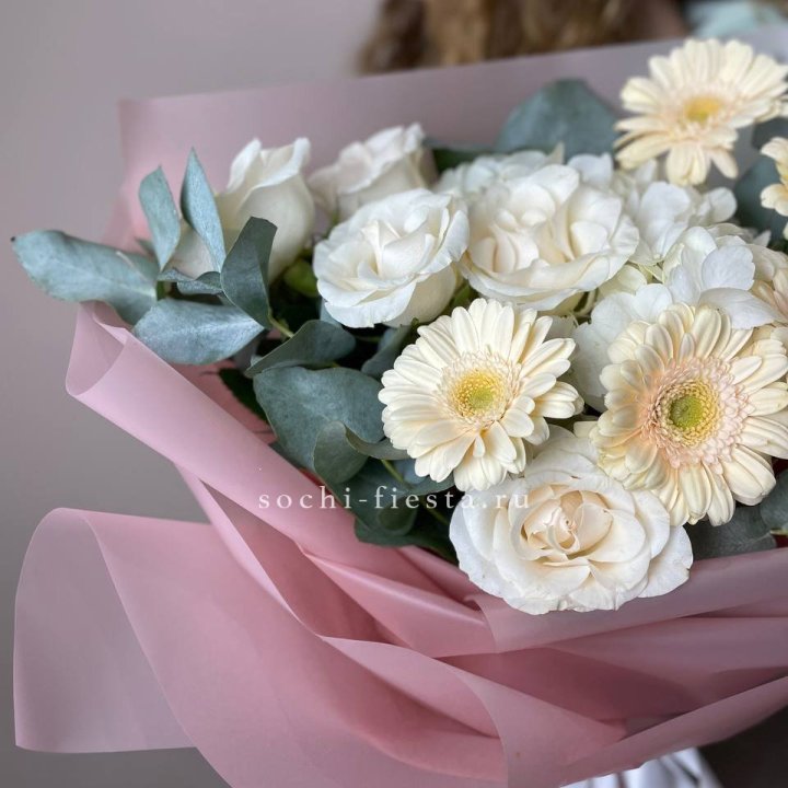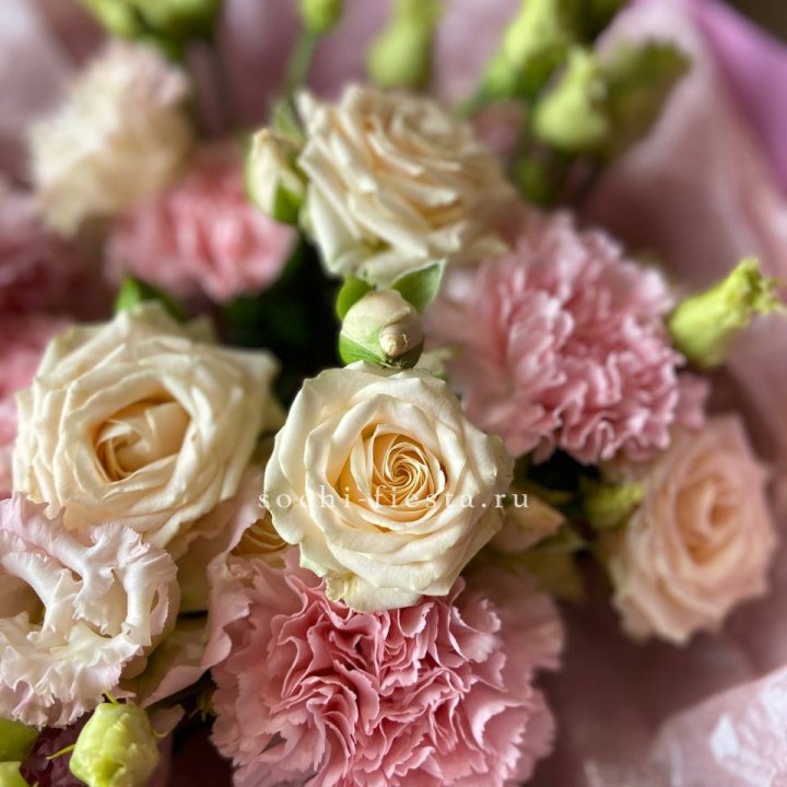 Букеты из эустом, альстромерий, диантусов, хризантем в Адлере