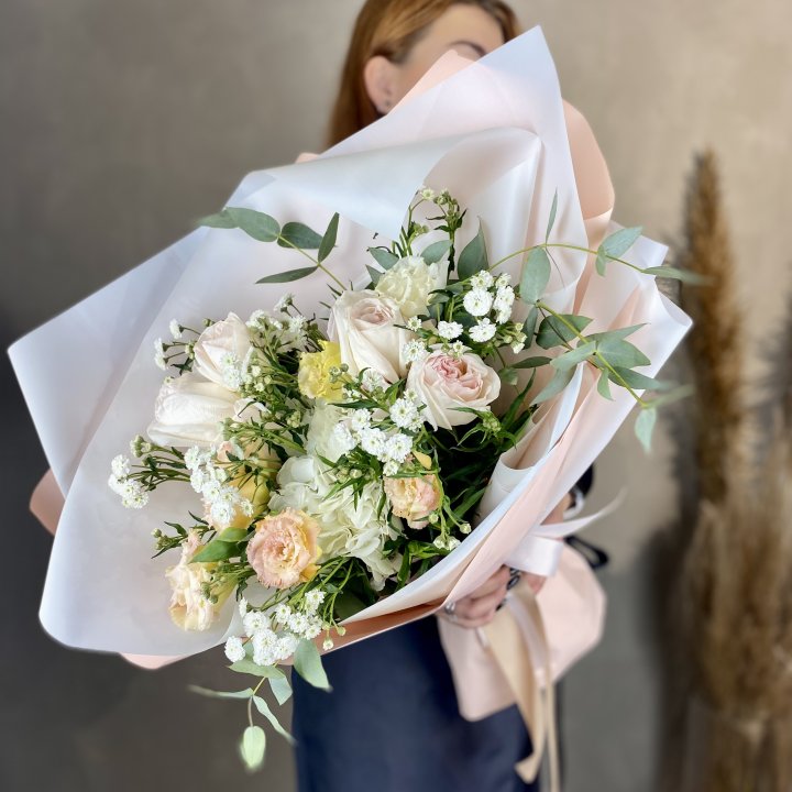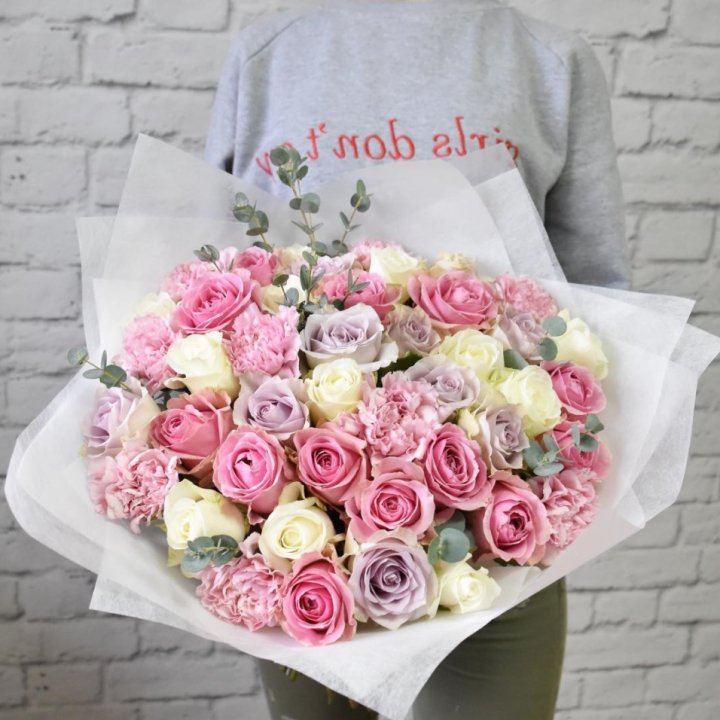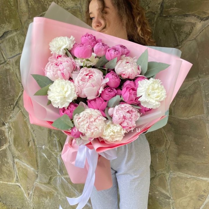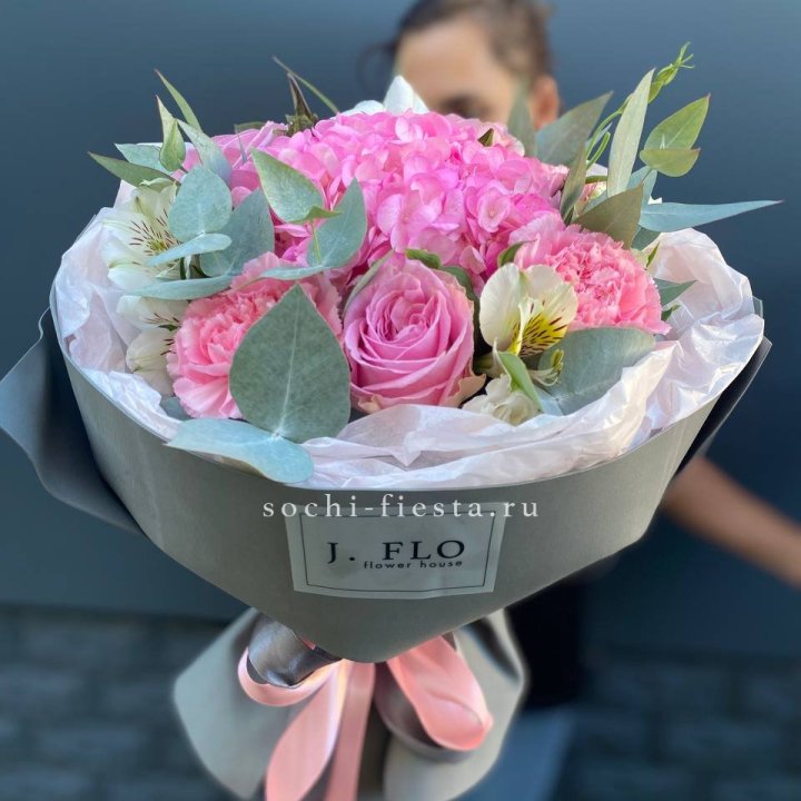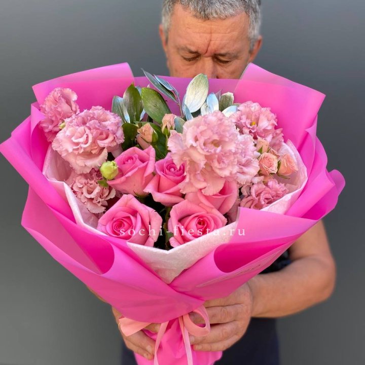 Букеты из эустом, альстромерий, диантусов, хризантем в АдлереСреднее время сборки: 35-45 минут