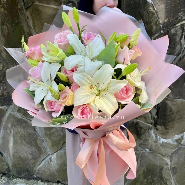 Букеты из эустом, альстромерий, диантусов, хризантем в АдлереСреднее время сборки: 35-45 минут