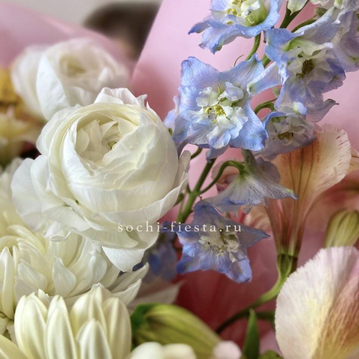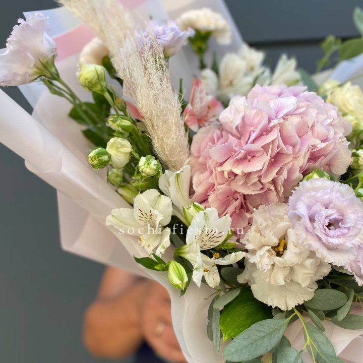 Букеты из эустом, альстромерий, диантусов, хризантем в Адлере