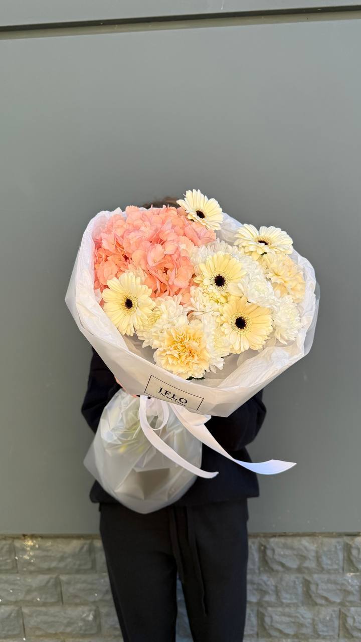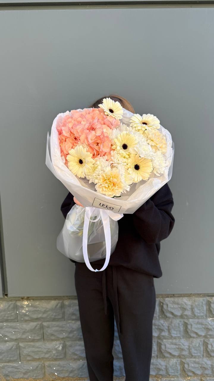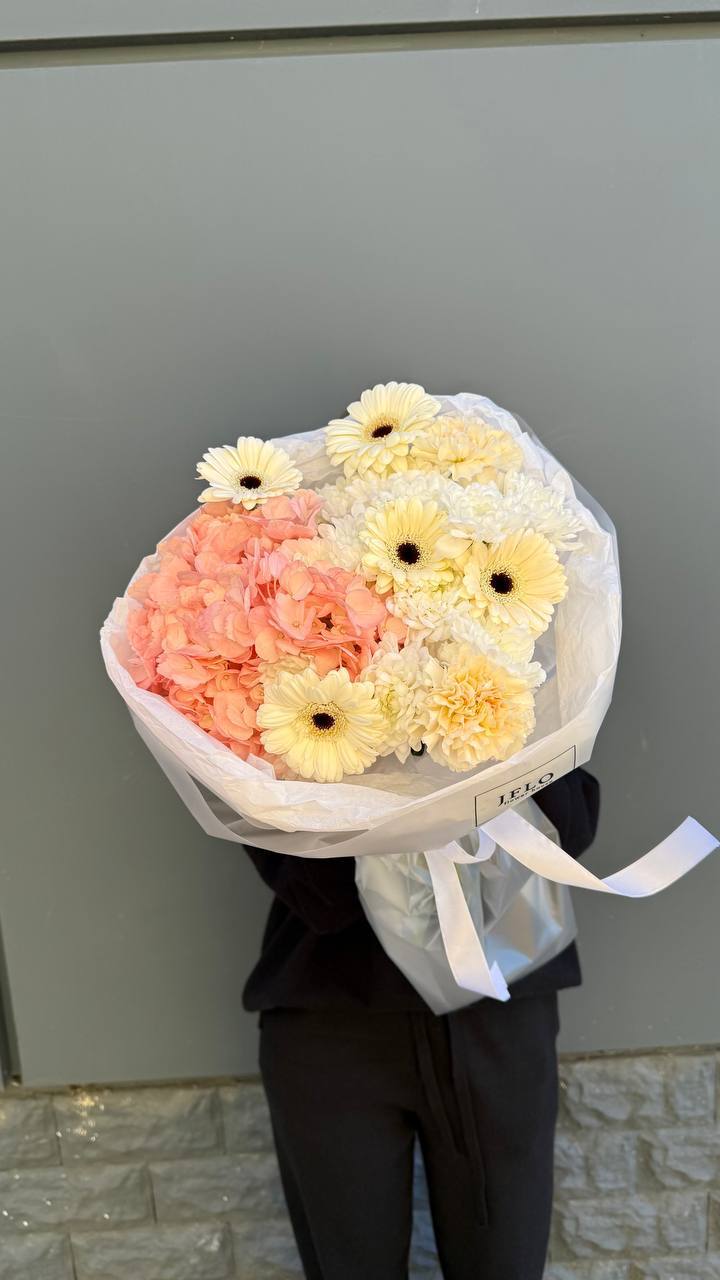 диантус, гортензия, хризантема, герберы, оформление.
