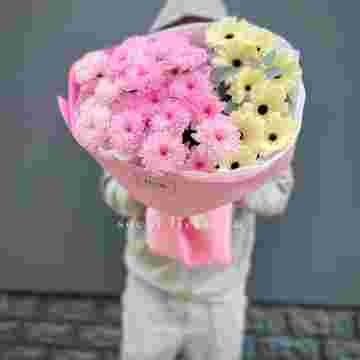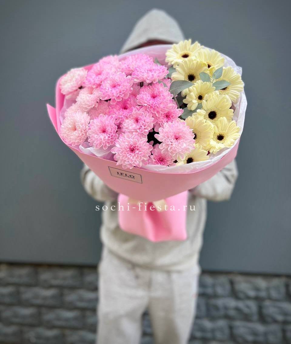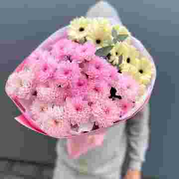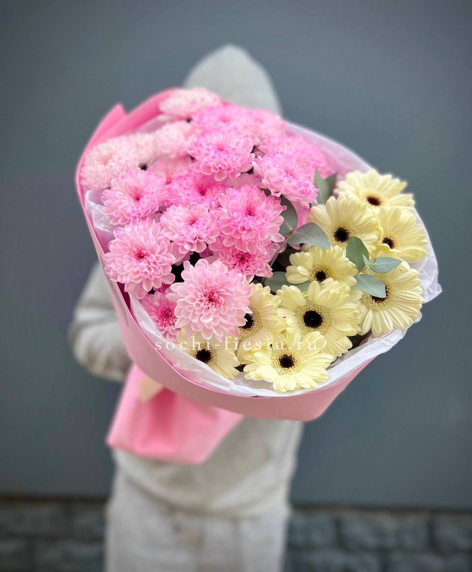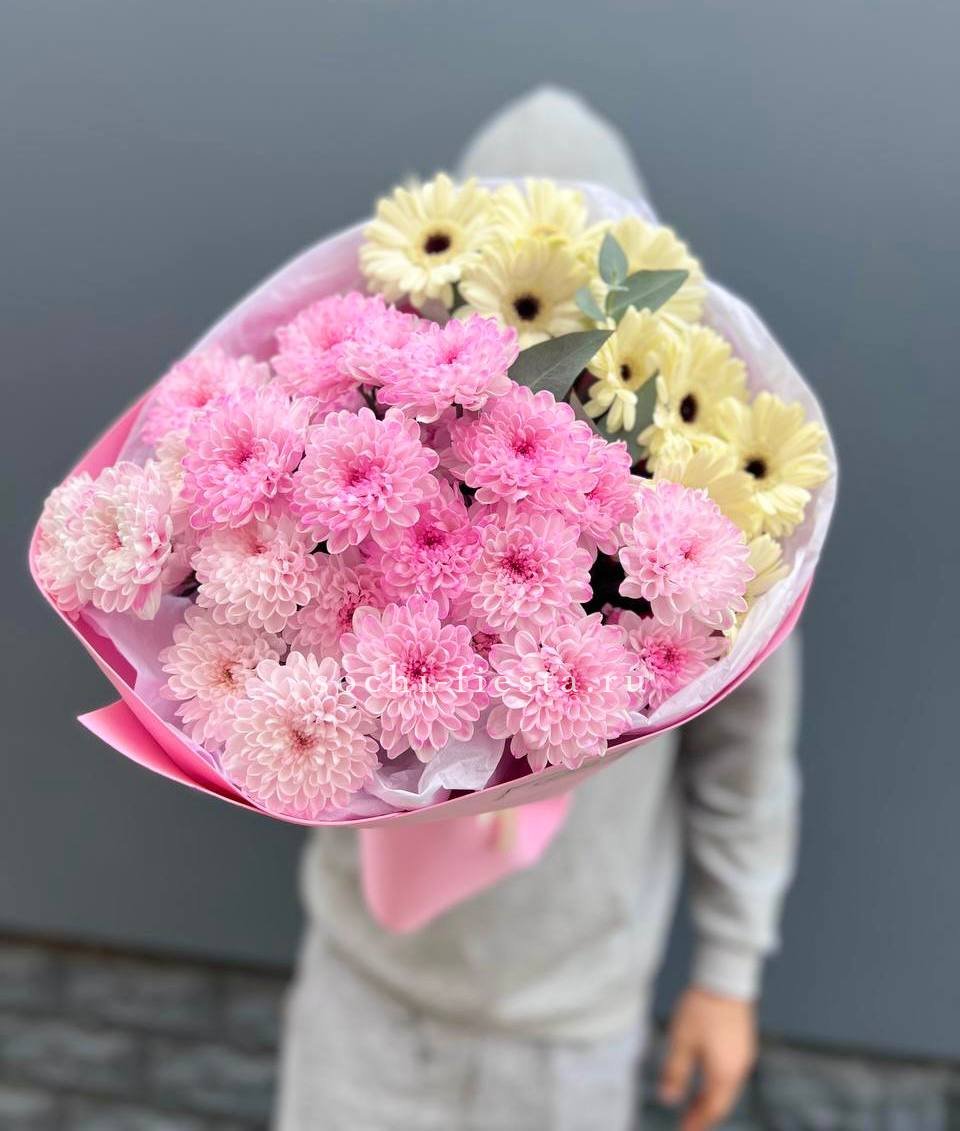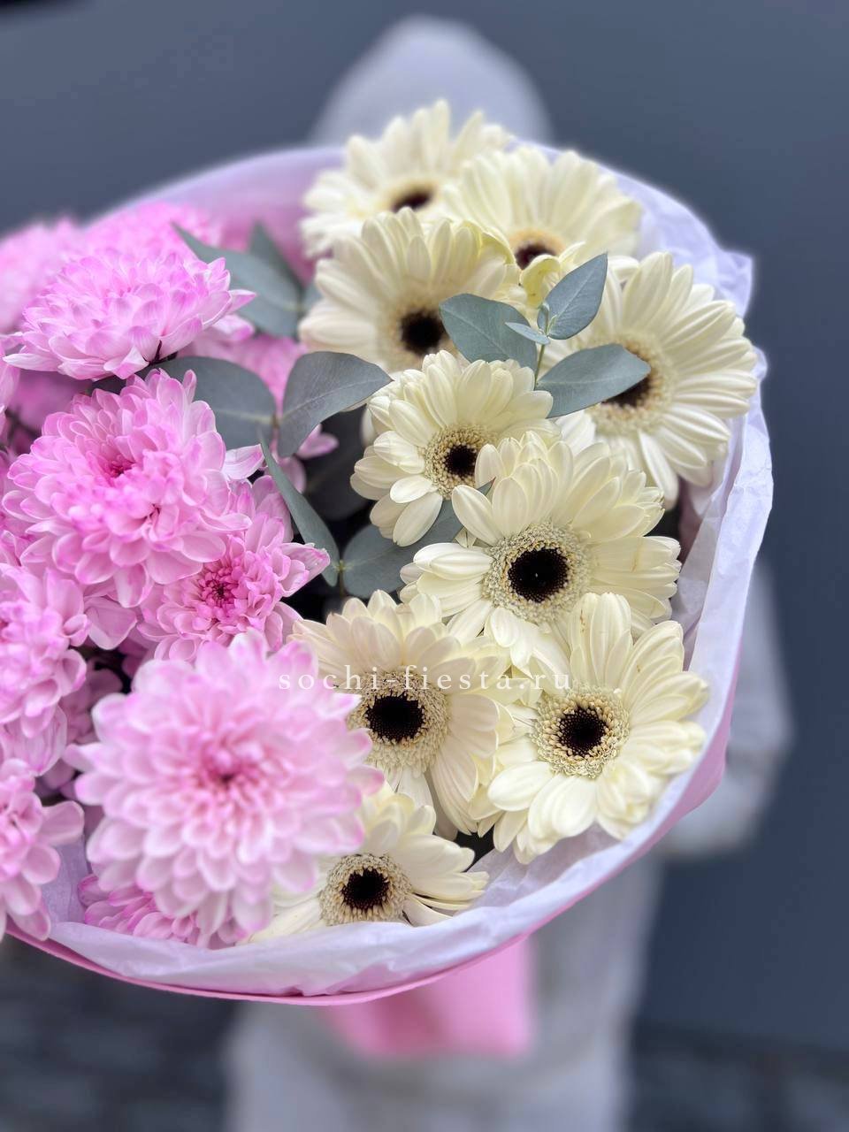 Состав: гербера, хризантема, эвкалипт, упаковка