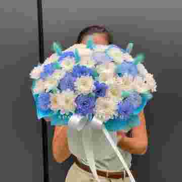 Состав:  пионы, маттиола, эустома, белые розы, лента, гортензия, цилиндр D20