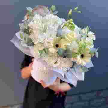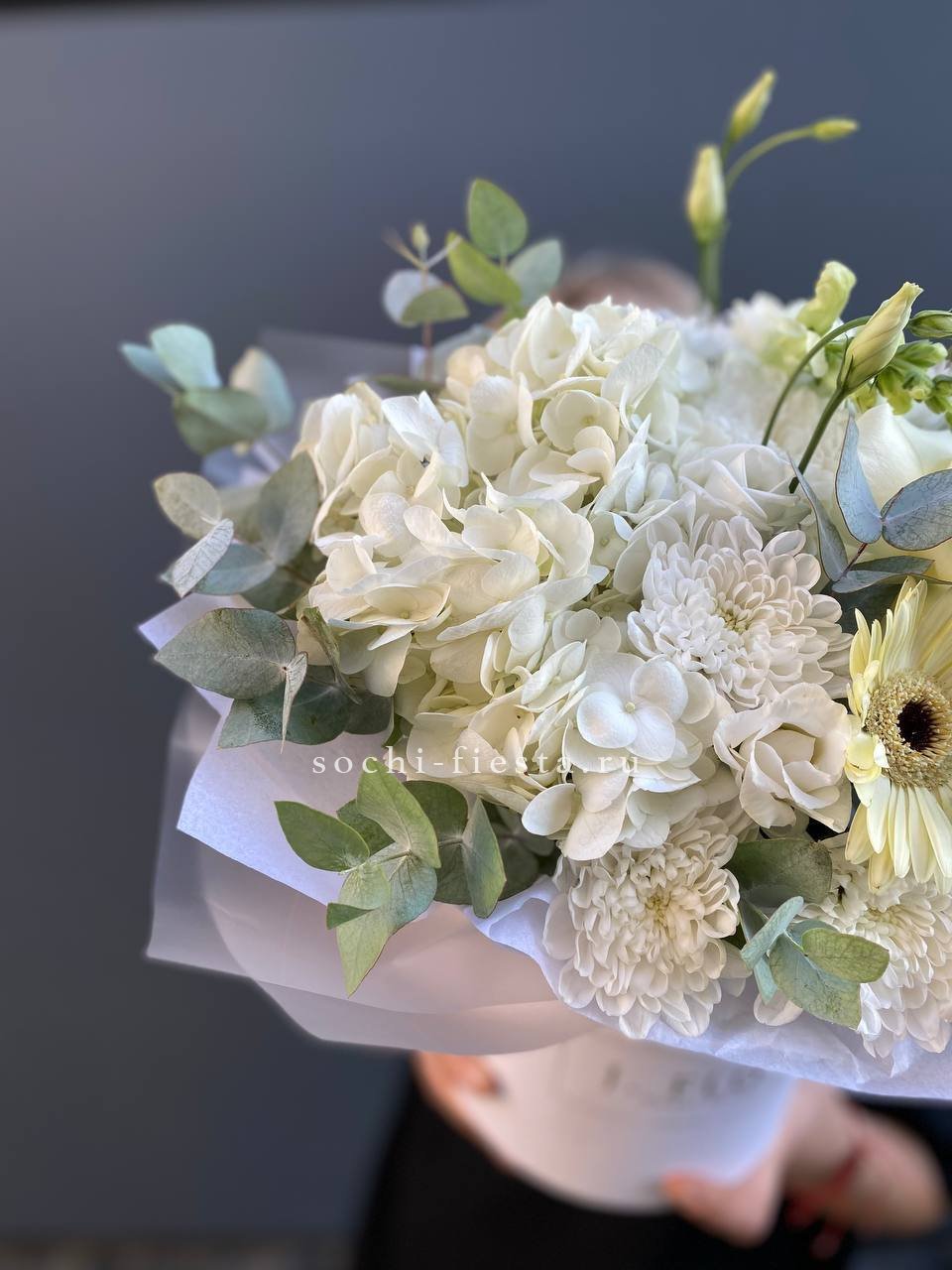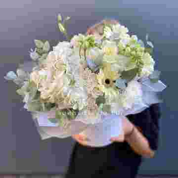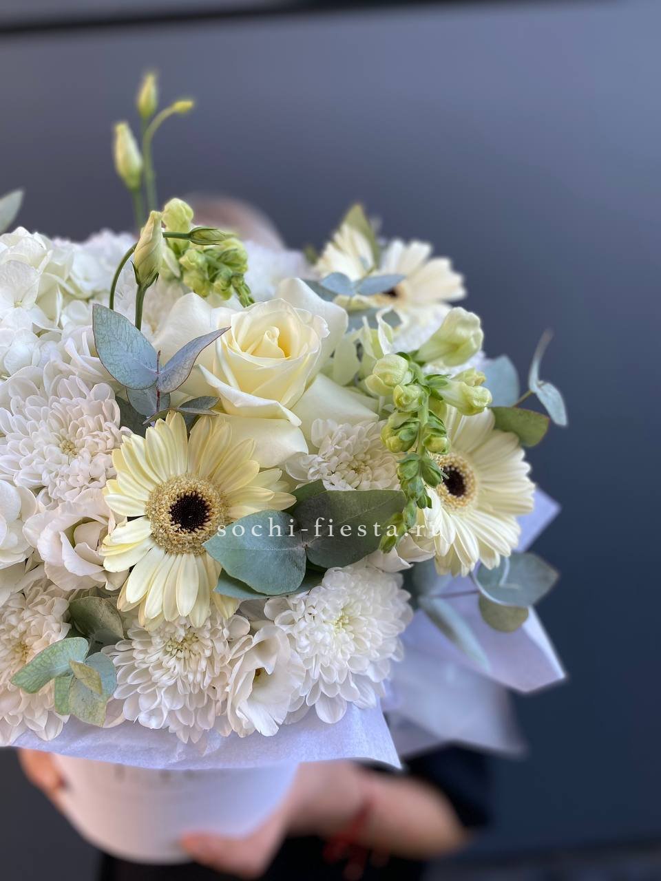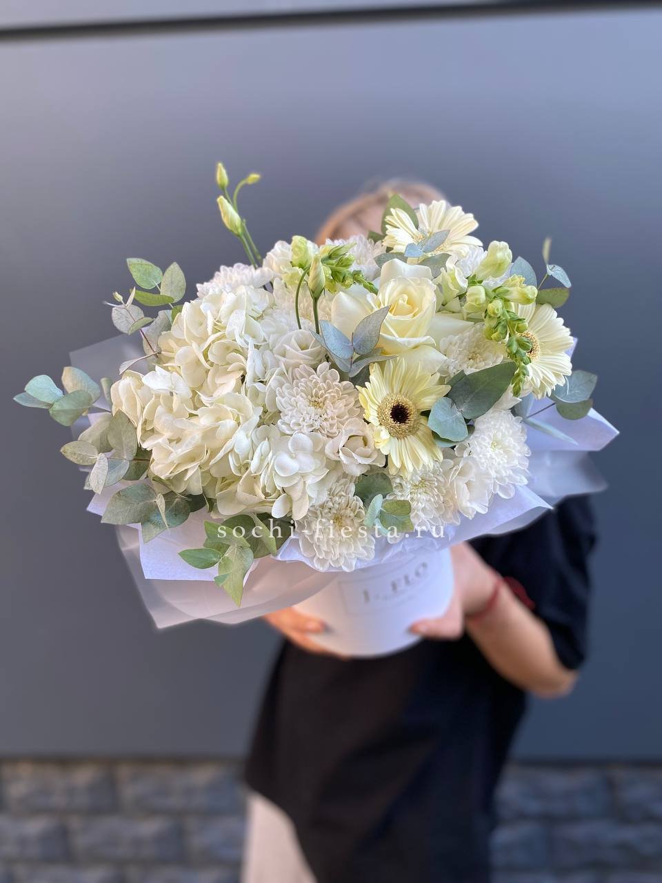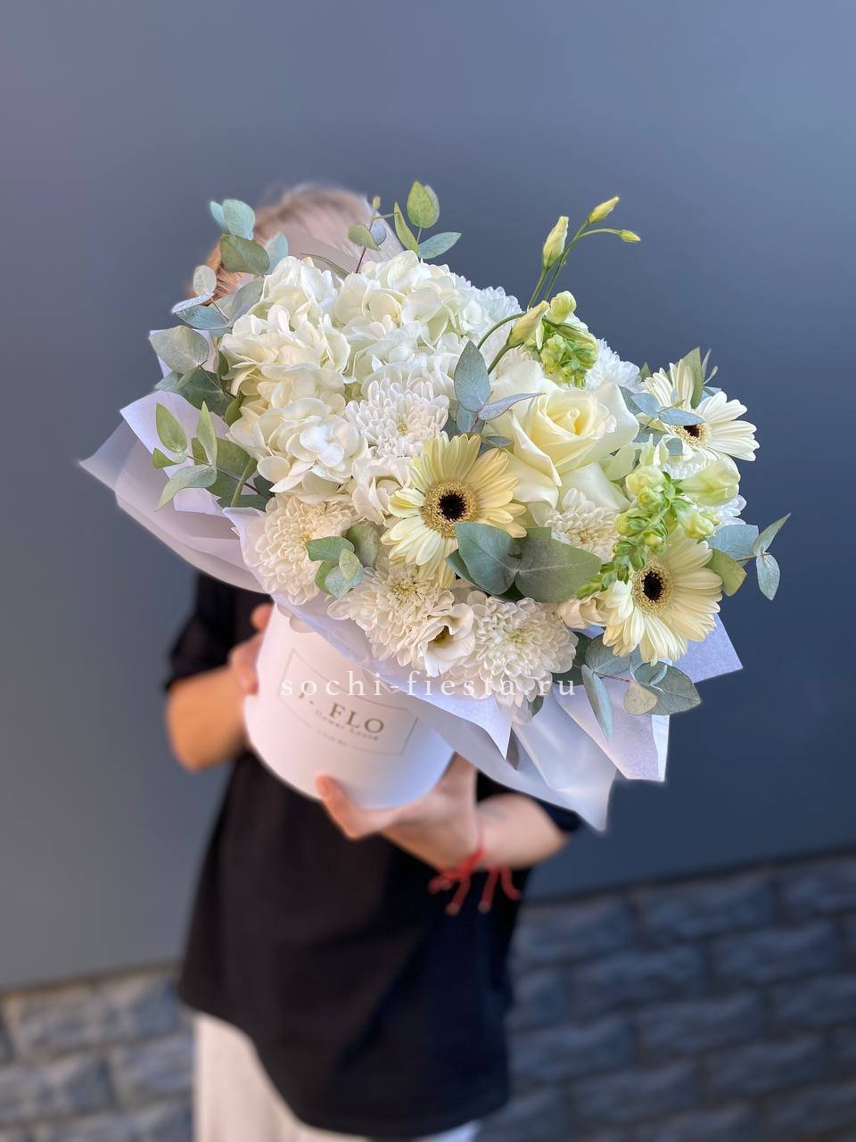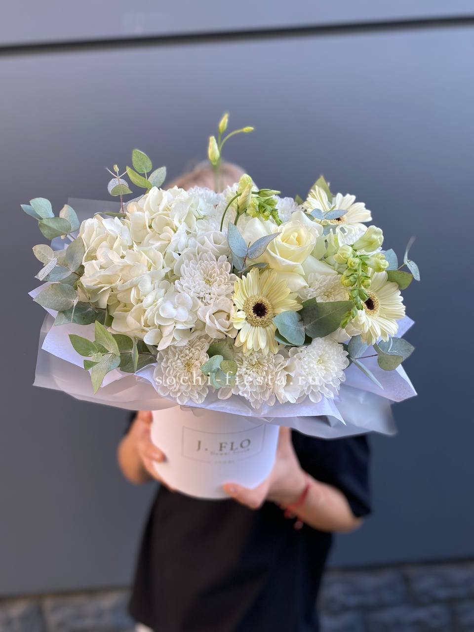 Состав: гортензия, роза, гербера, хризантема, эустома, антиринум, бокс 16