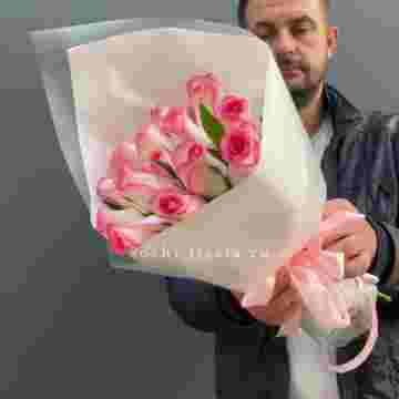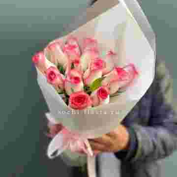 Состав: пионовидные розы Мисти Бабблс, гортензия, розы, диантусы, эустома, маттиола, джутовое кашпо, стифа, эвкалипт