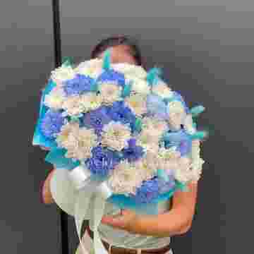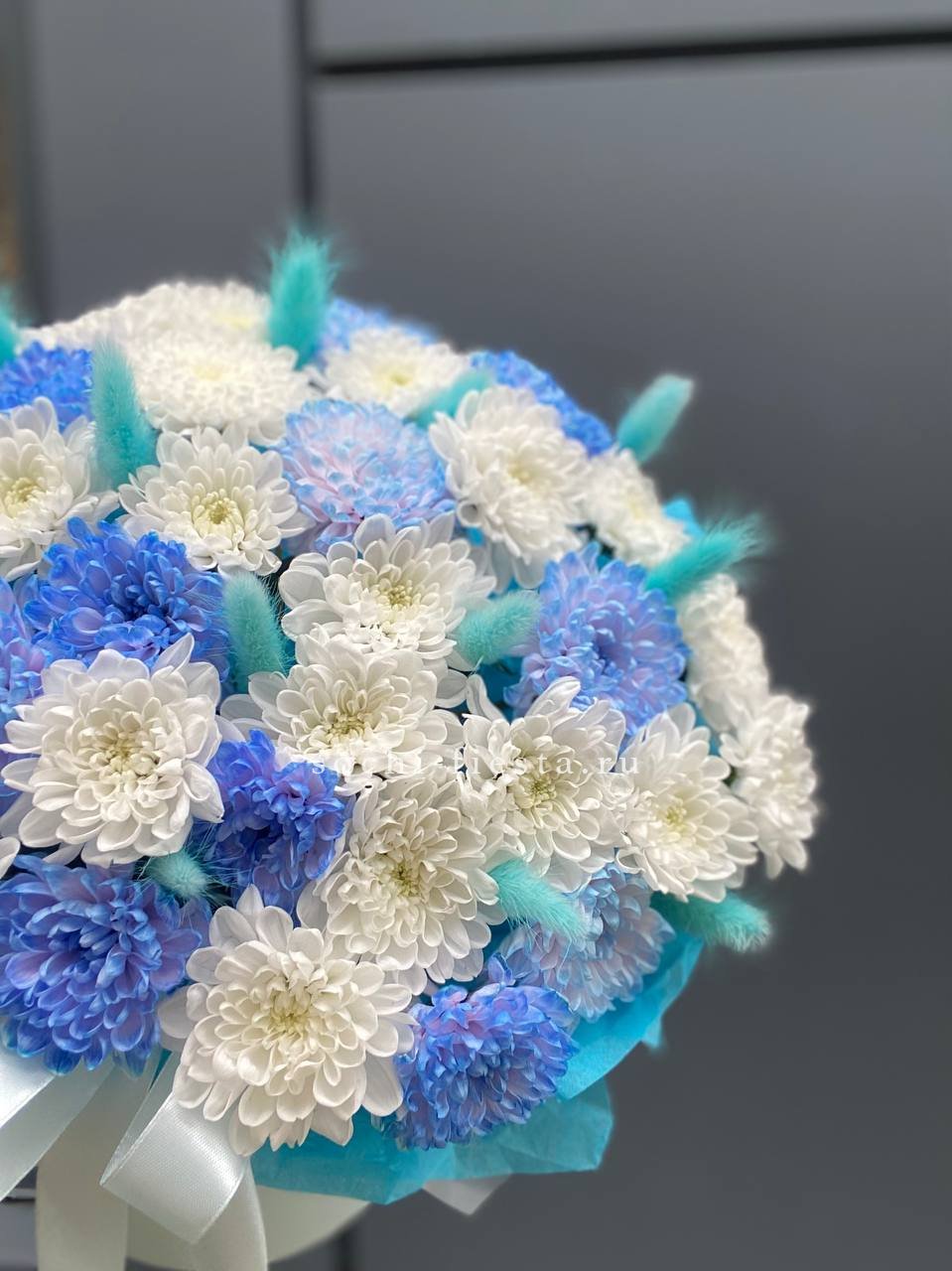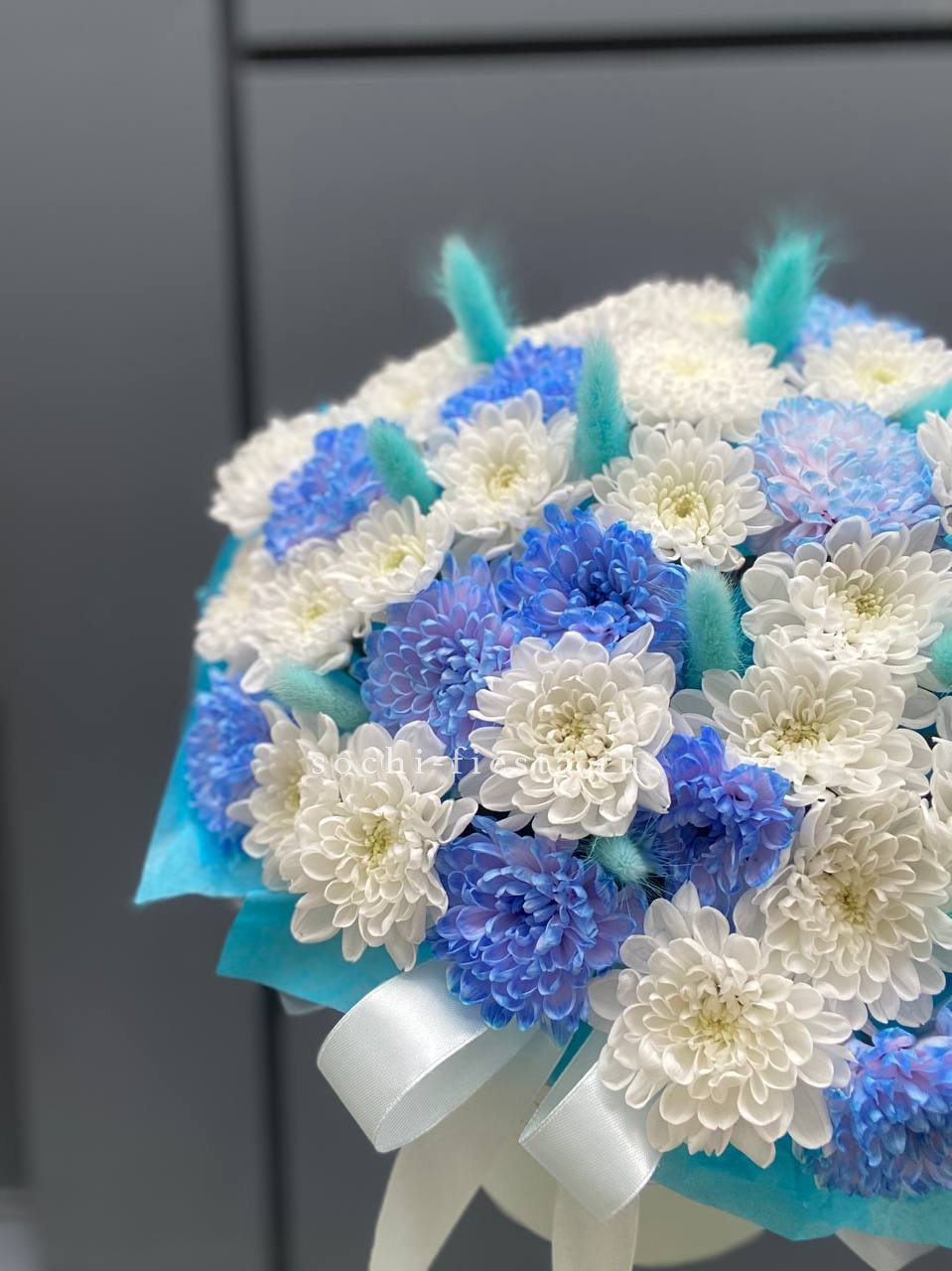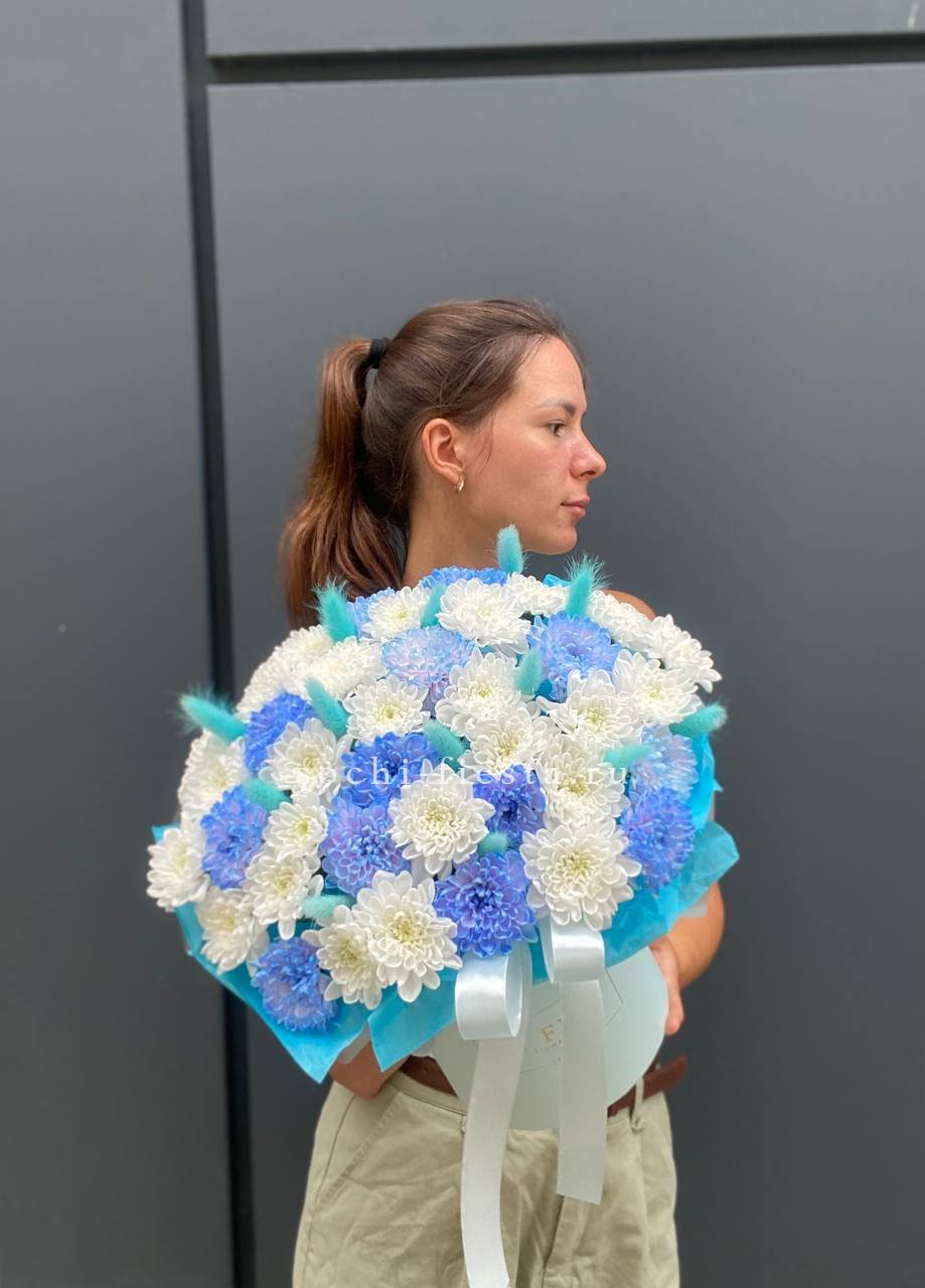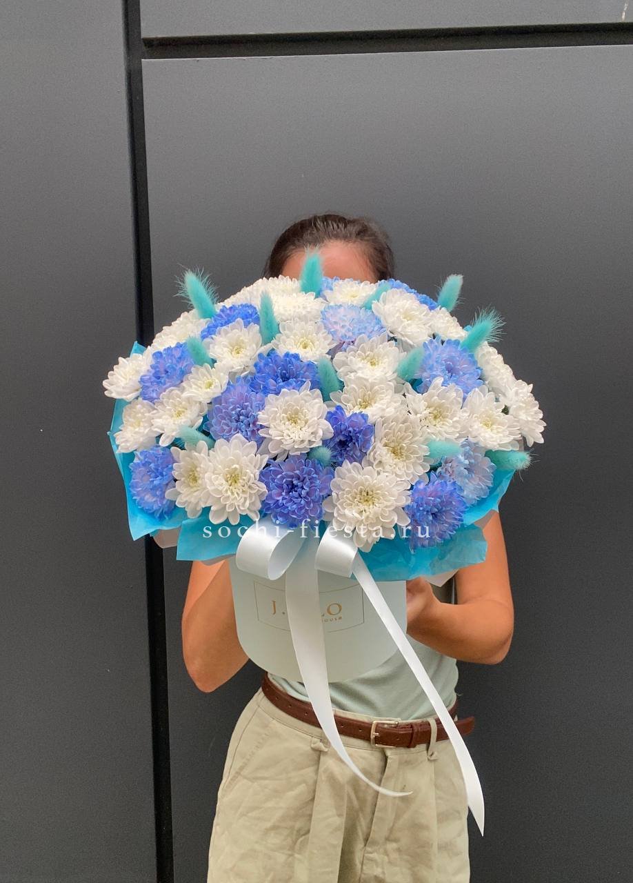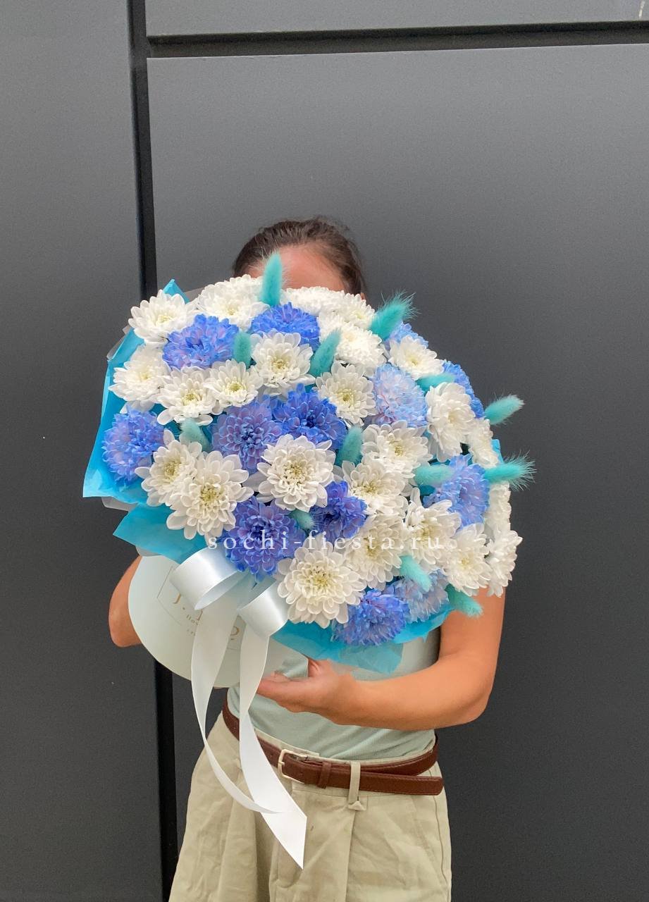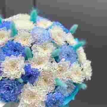 Коробочка хризантем и лагуруса «Blue sea»