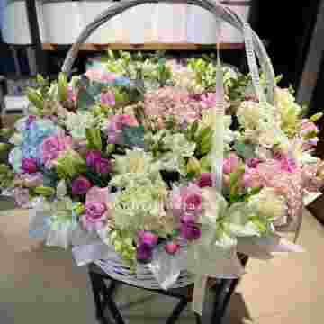 Состав: пионы, кустовая пионовидная роза, маттиола, пиафлор, плетеный бокс или корзина D40 В низкий сезон (с сентября - по апрель) пионы, находящиеся в составе данной композиции, могут быть заменены на пионовидную розу по согласованию с заказчиком