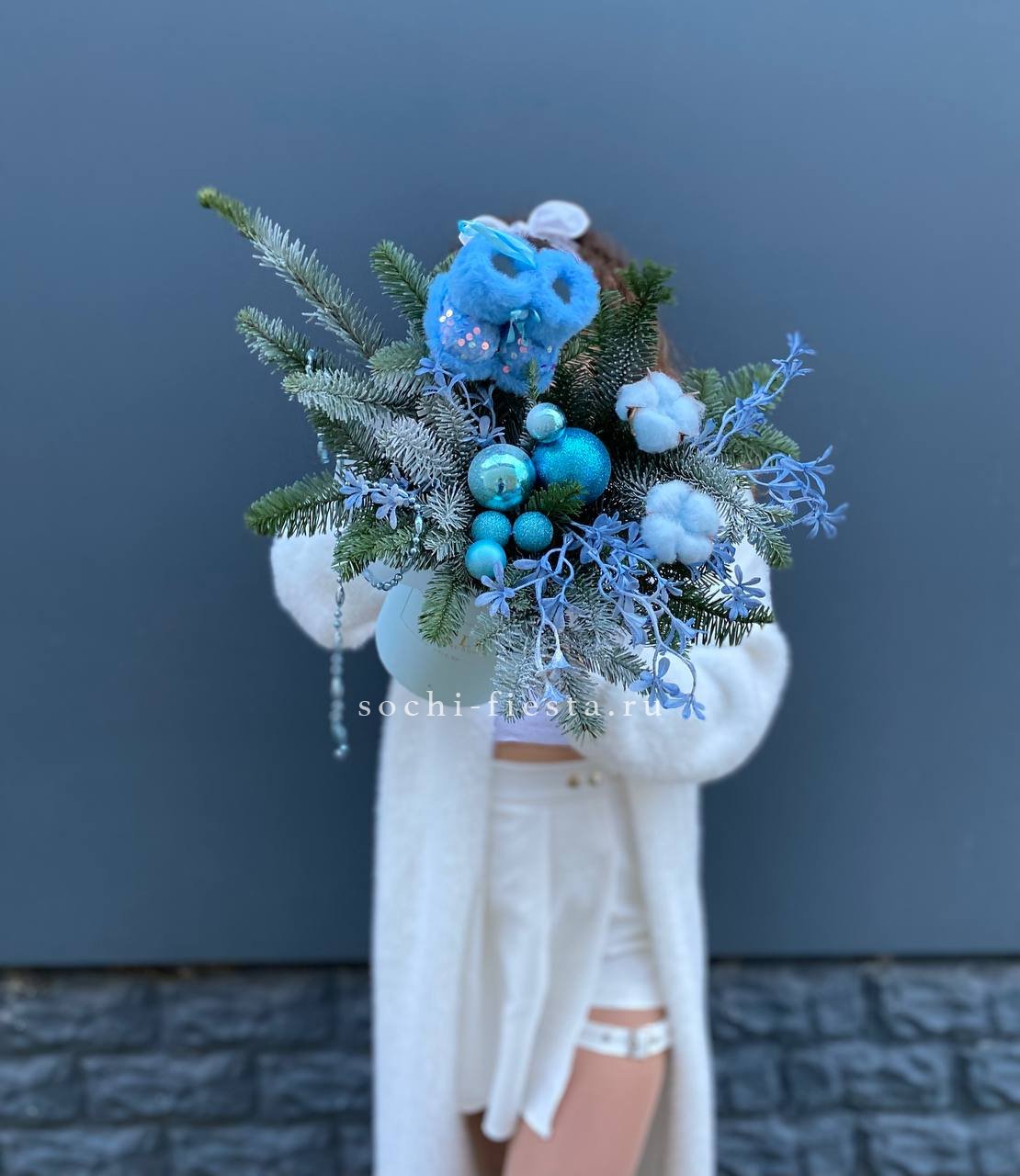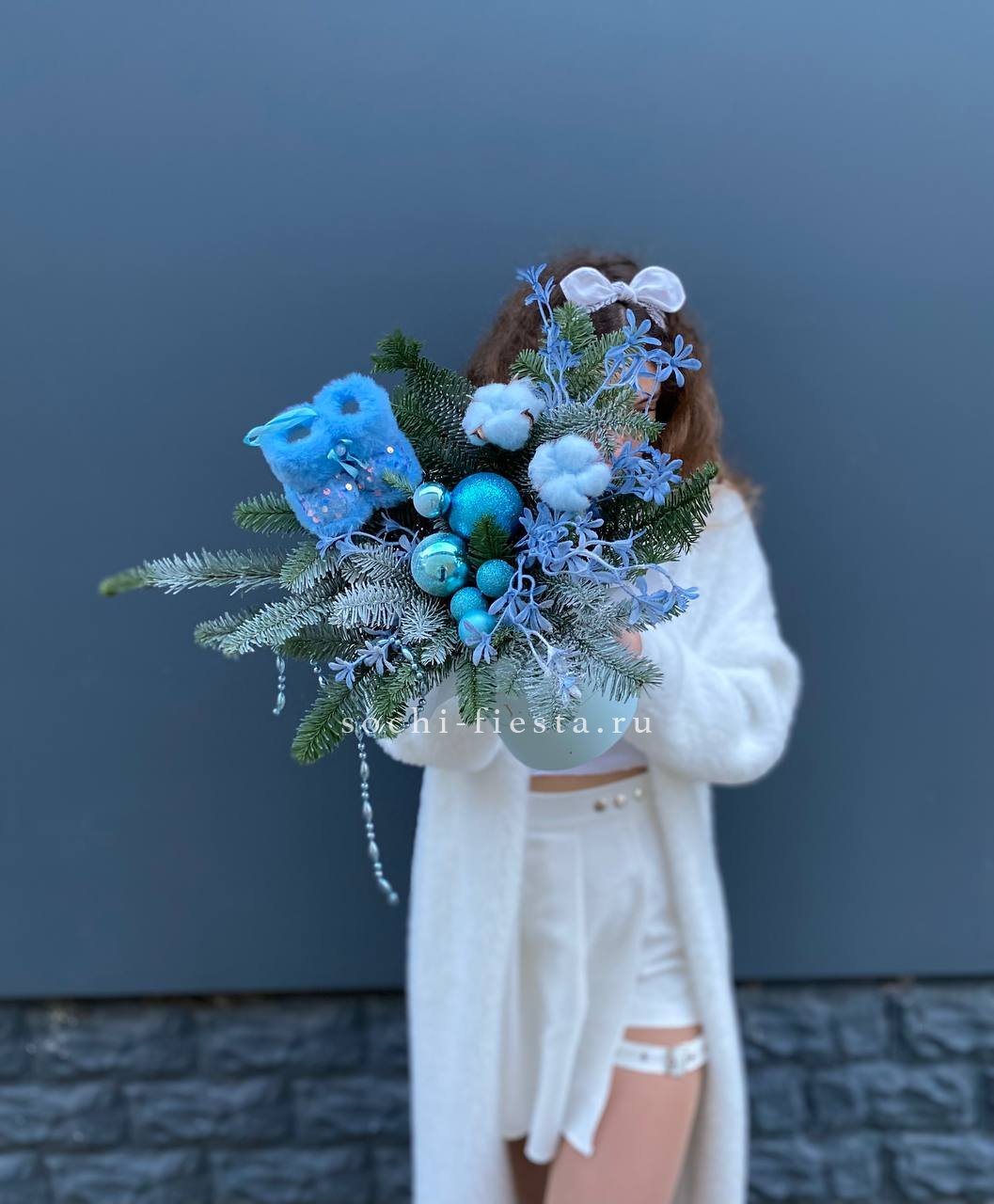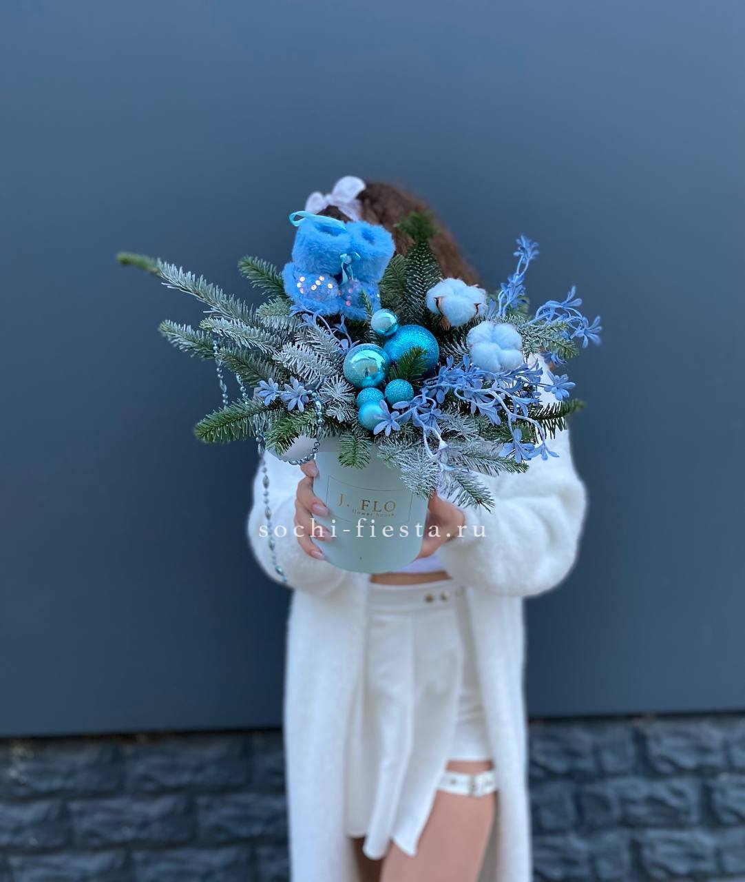 Состав: нобилис, цилиндр, оазис, сапожки, новогодние игрушки, декор