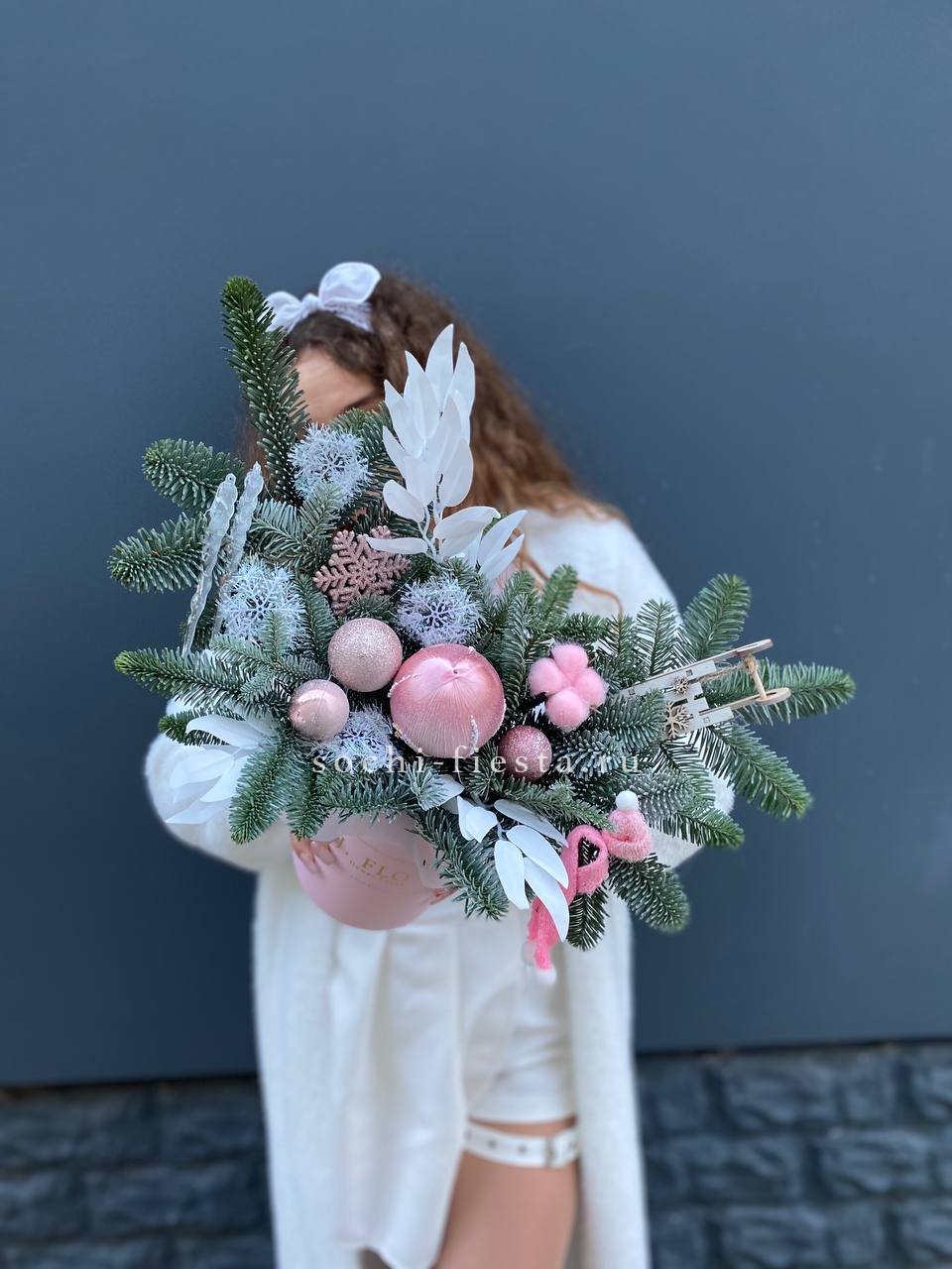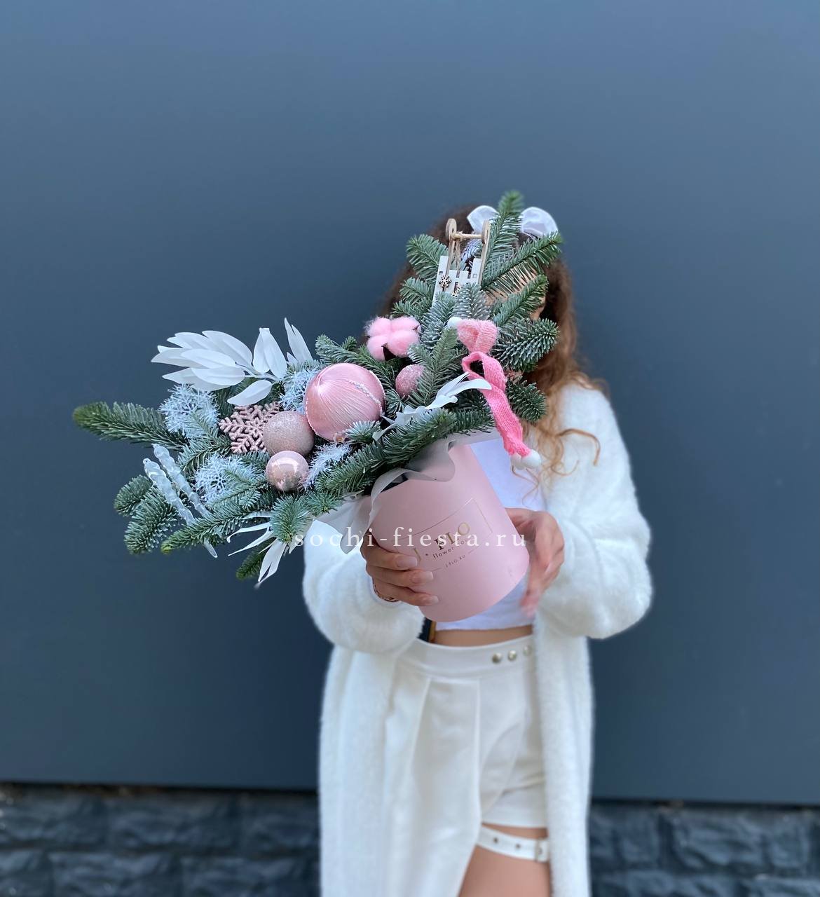 Состав: нобилис, цилиндр, оазис, сани, новогодние игрушки, декор
