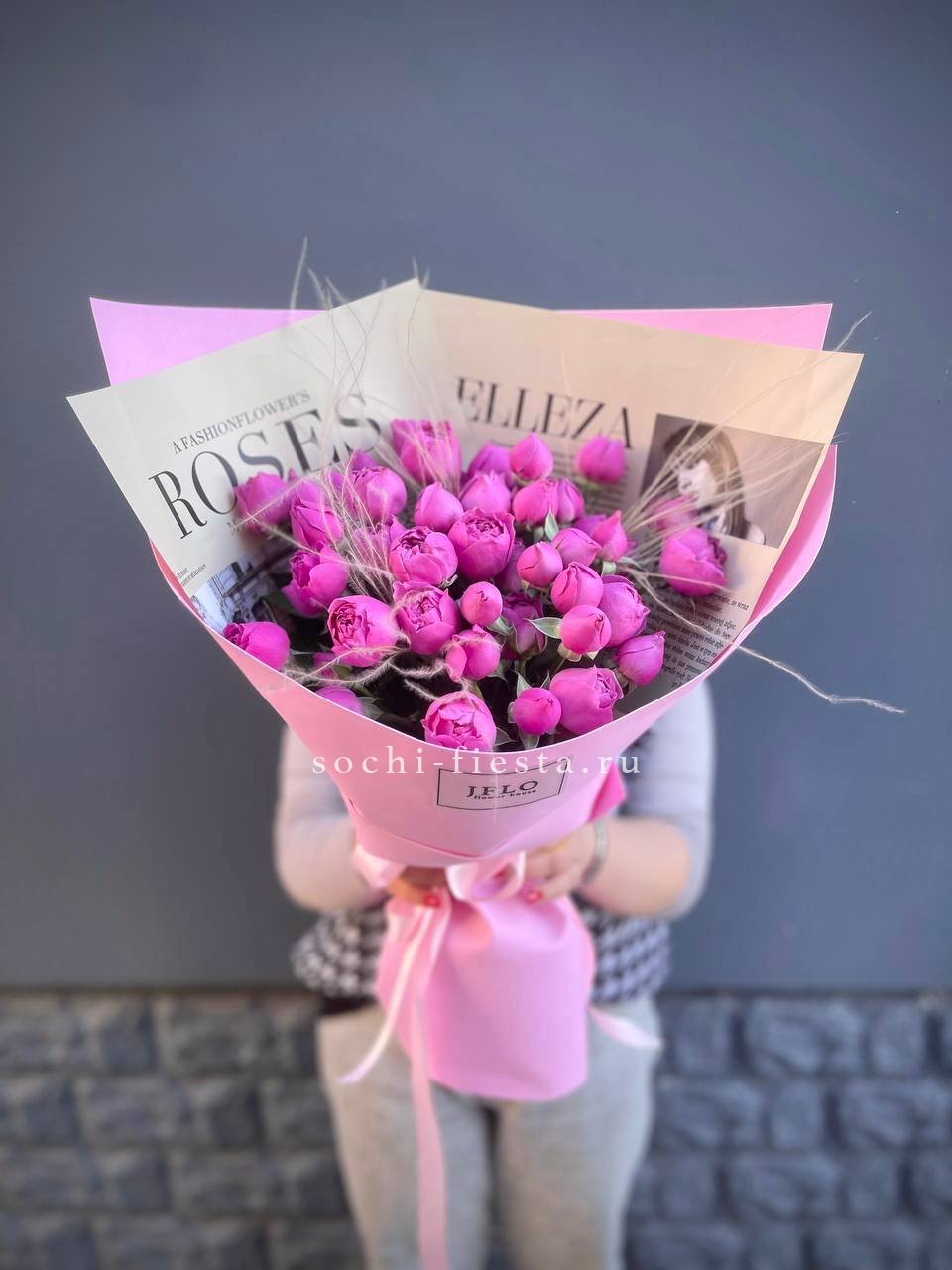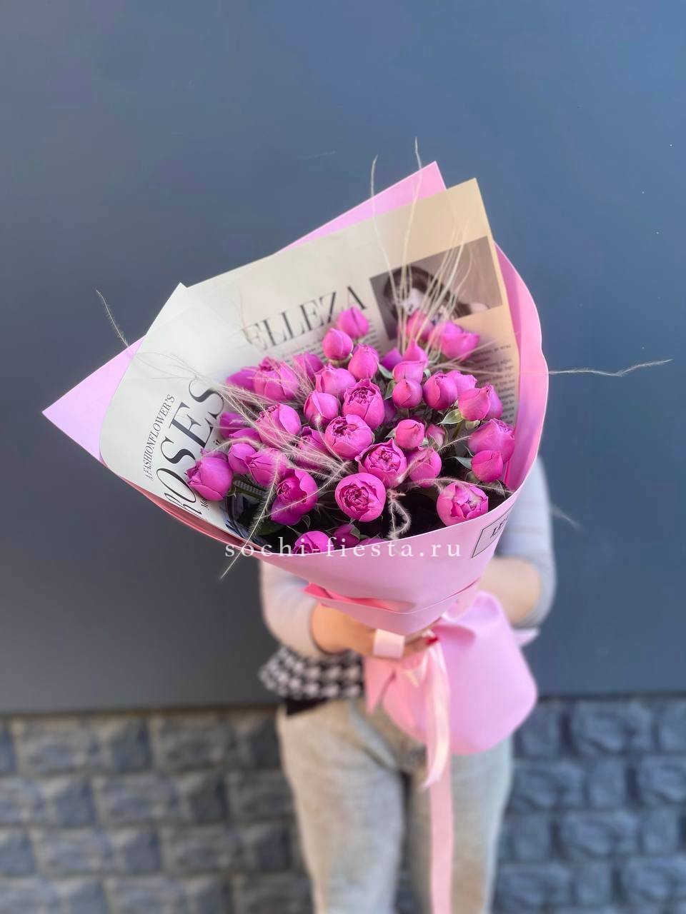 Кустовые розы Бомбастик в крафте