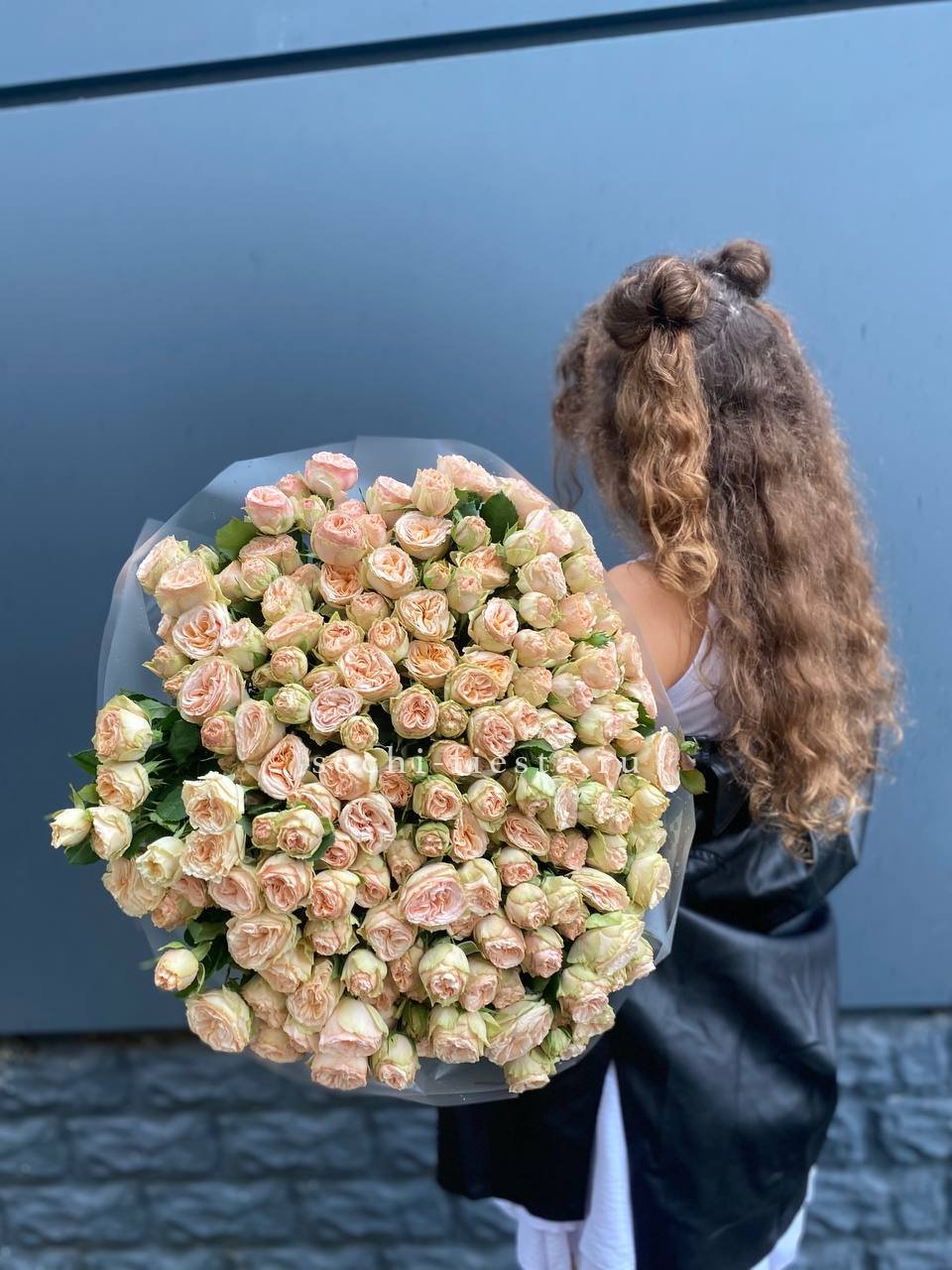 Состав: 51 кустовая пионовидная роза, лента, дизайнерская упаковка