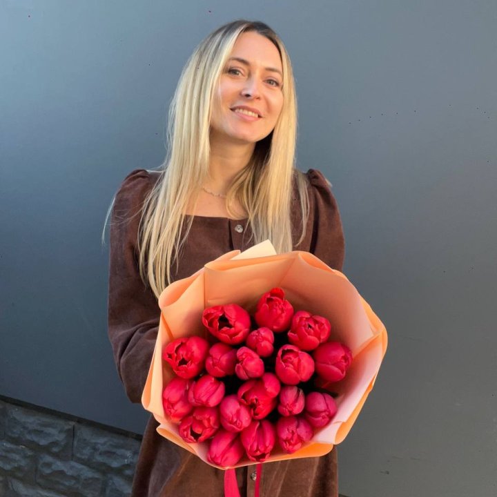 25 красных воздушных тюльпанов