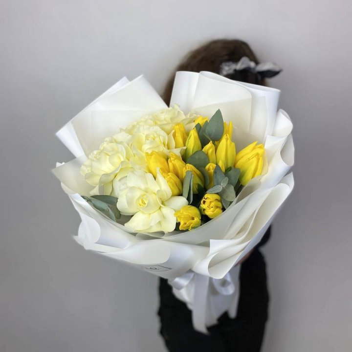Дуо жёлтые тюльпаны и розы